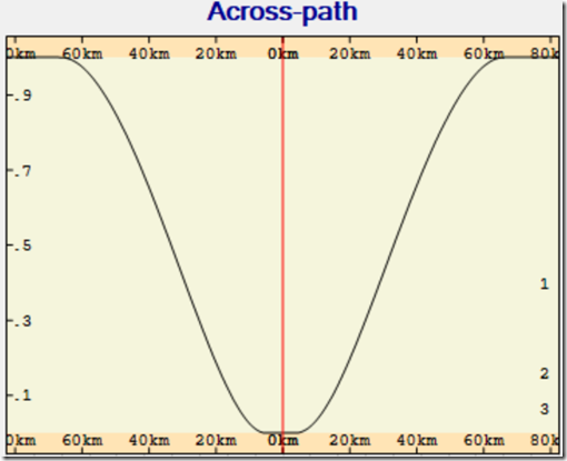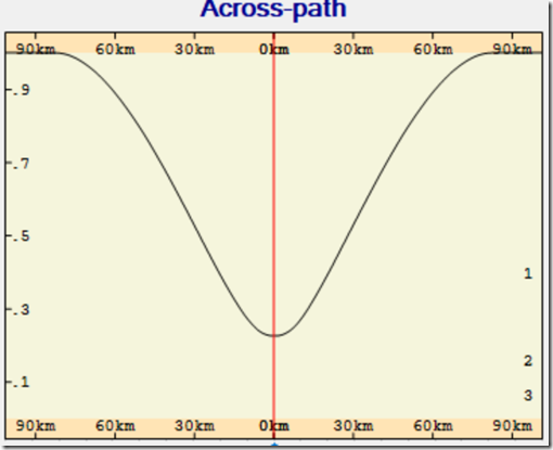 For the star diameter of 42mas, the along-track light curve at the northern limit of totality is: