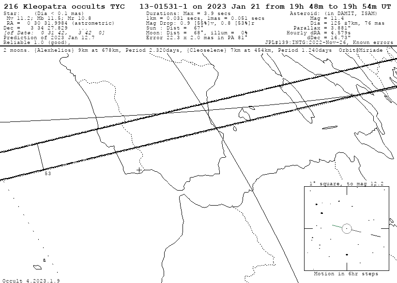 (216) Kleopatra occults an 11mag star in Europe on 2023 Jan 21st