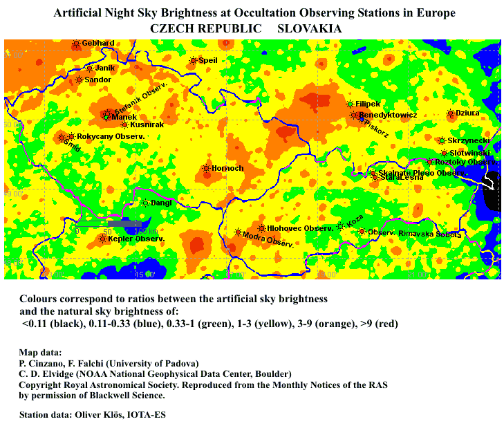 - The maps show the artificial sky brightness at the zenith in clear