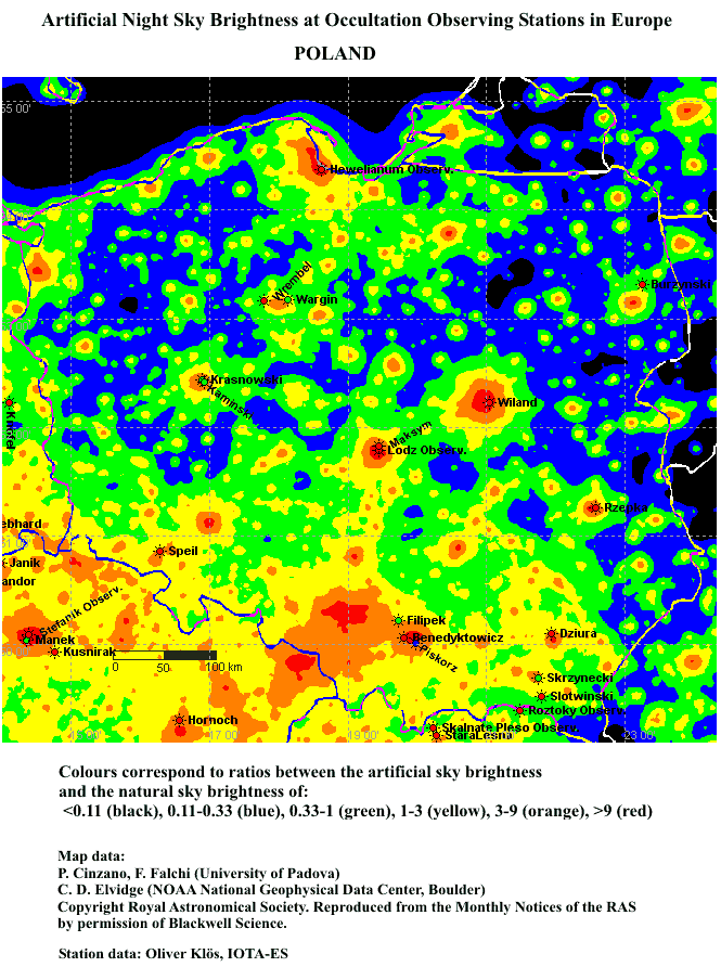 Blue: artificial sky brightness over 10%